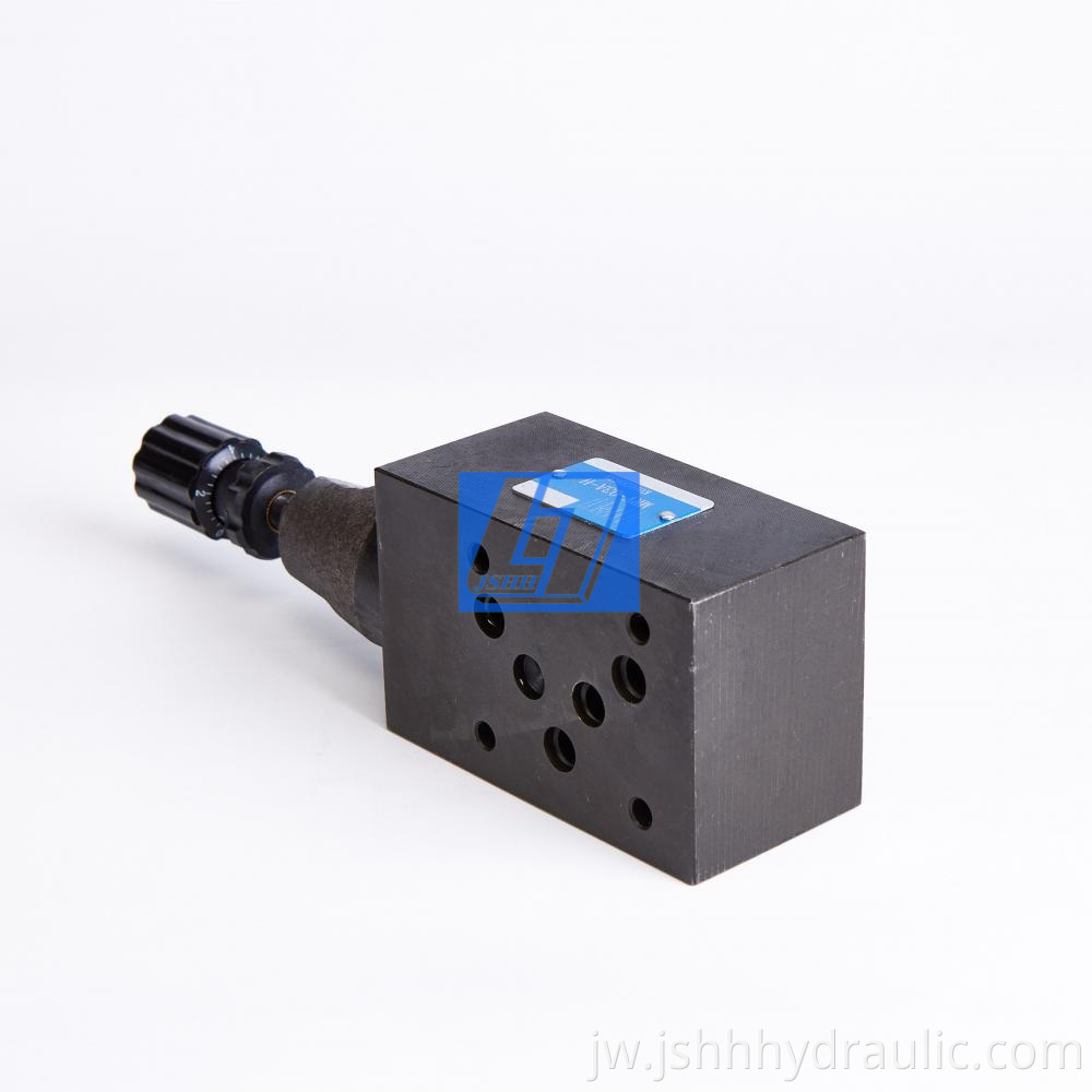 Relief tekanan modular (MRV) minangka piranti keamanan tekanan sing nyegah pompa saka kakehan kakehan. Nalika tekanan sistem luwih dhuwur tinimbang nilai set, katup modular lega (MRV) bakal nyebabake lenga hidraulik maneh menyang tank. Jaga sistem stabil, supaya bisa mesthekake yen sistem ora bakal nyebabake kacilakan amarga tekanan sing gedhe banget. Katup arah solenoid kaya Seri DSG bisa diinstal ing ndhuwur kanggo ngganti arah minyak.